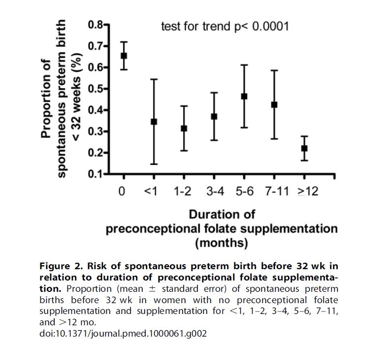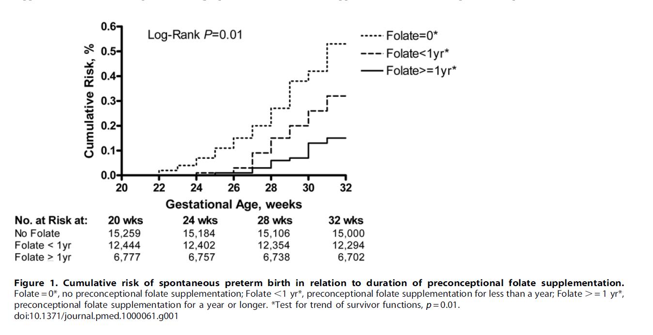 [1] ブコウスキー R ら。先入観 葉酸補給と自然早産のリスク:コホート 勉強する。 PLOS メッド。 2009 年 5 月;6(5):e1000061。